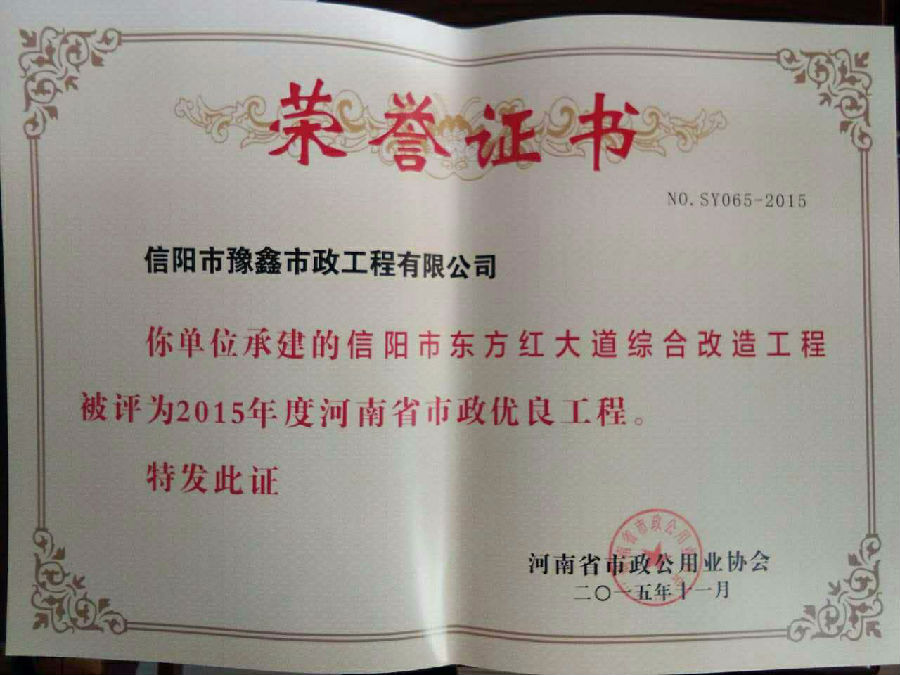 好風(fēng)憑借力,送我上青云。近年來,公司積極參與城市市政基礎(chǔ)設(shè)施建設(shè)施工,積極參與市場競爭,先后承擔(dān)施工了市政府重點(diǎn)工程南京路道路改造工程、春曉路道路改造工程,東方紅大道道路改造工程、龍江東路新建工程等重點(diǎn)民生工程,其中南京路道路改造工程被省建設(shè)廳評(píng)為“中州杯”, 春曉路和東方紅大道道路改造工程被省建設(shè)廳評(píng)為“省優(yōu)工程”,成為城區(qū)一道道亮麗的風(fēng)景線。參與施工了市典范小區(qū)“臺(tái)北城上城”、“恒大名都”以及師范學(xué)院、職業(yè)技術(shù)學(xué)院、交警支隊(duì)和軍區(qū)道路工程,參與施工了雞公山管理區(qū)、南灣管理區(qū)、明港鎮(zhèn)和羅山縣等部分道路小區(qū)工程施工,累計(jì)大小各類施工工程三百余項(xiàng),企業(yè)影響力不斷擴(kuò)大、輻射力不斷增強(qiáng),市場份額不斷提高,企業(yè)信譽(yù)不斷彰顯,為信陽城市建設(shè)做出了積極貢獻(xiàn),為企業(yè)的可持續(xù)發(fā)展插上了騰飛的翅膀。